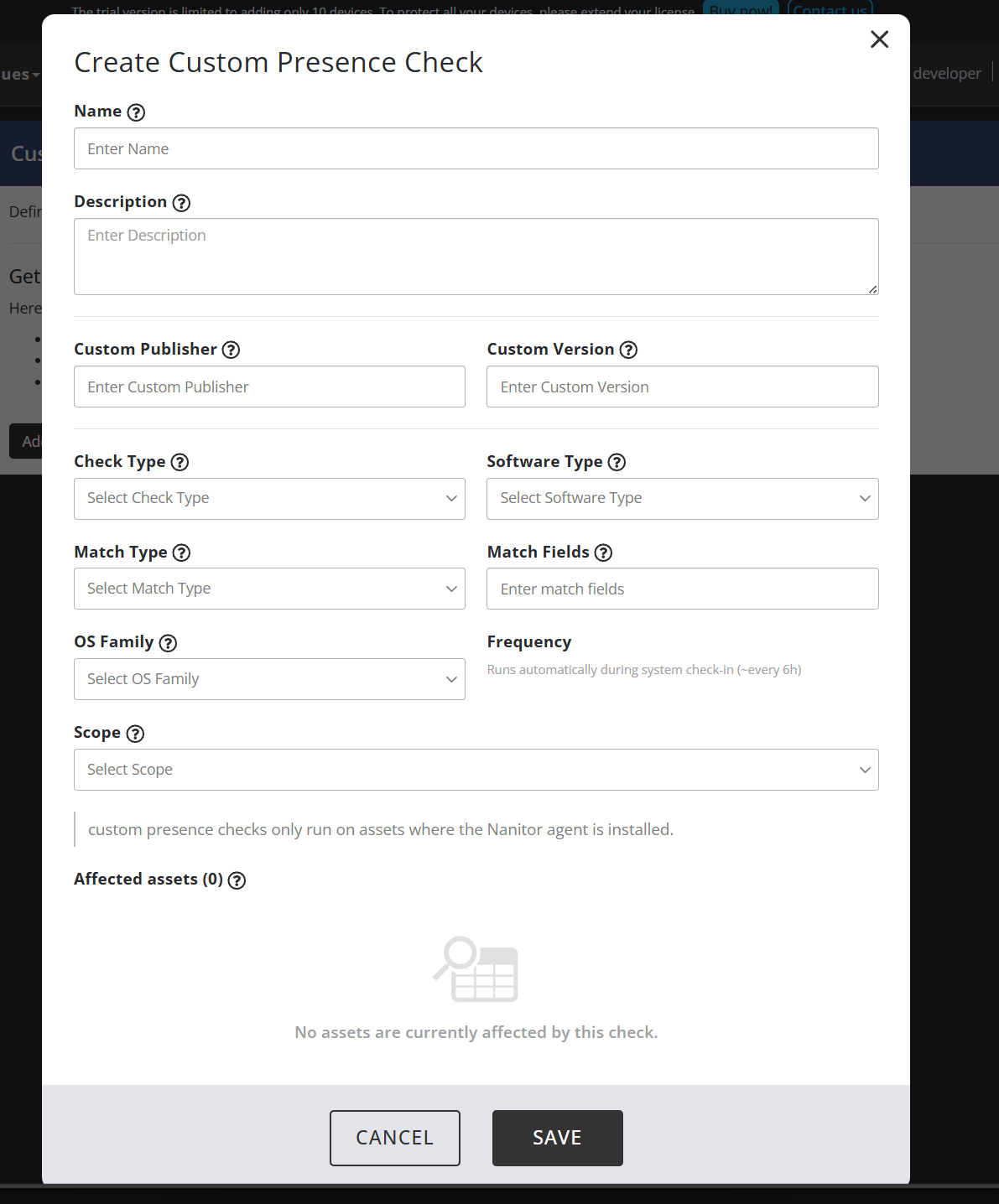 Close visibility gaps by defining your own lightweight checks for processes, files, or directories across Windows, Linux, and macOS. Matches appear in Software Inventory and participate in policies, alerts, and reporting. All lifecycle actions are audited. The UI uses the clearer, user-friendly name Custom Software Checks.