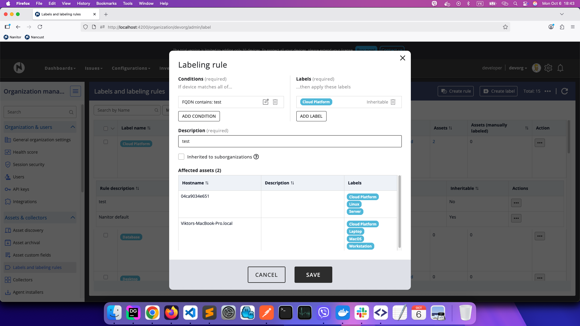 Asset labeling: FQDN 'Contains' rule. Create label rules that match substrings in fully qualified domain names (case-insensitive), enabling flexible domain-suffix targeting.
