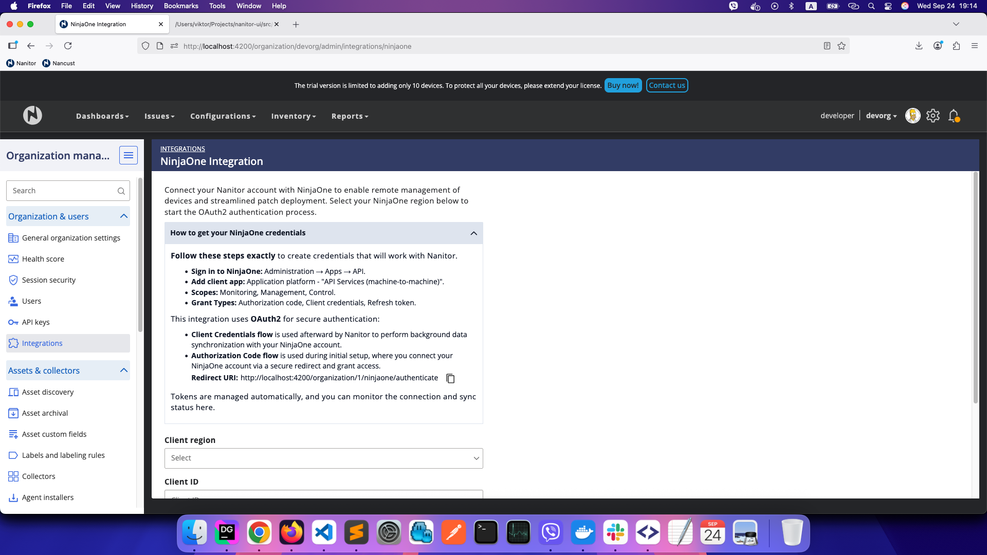 - Inline setup guides for NinjaOne and Vanta. Collapsible, step-by-step instructions placed directly in the integration pages, with dynamic Redirect URI generation to cut setup errors.