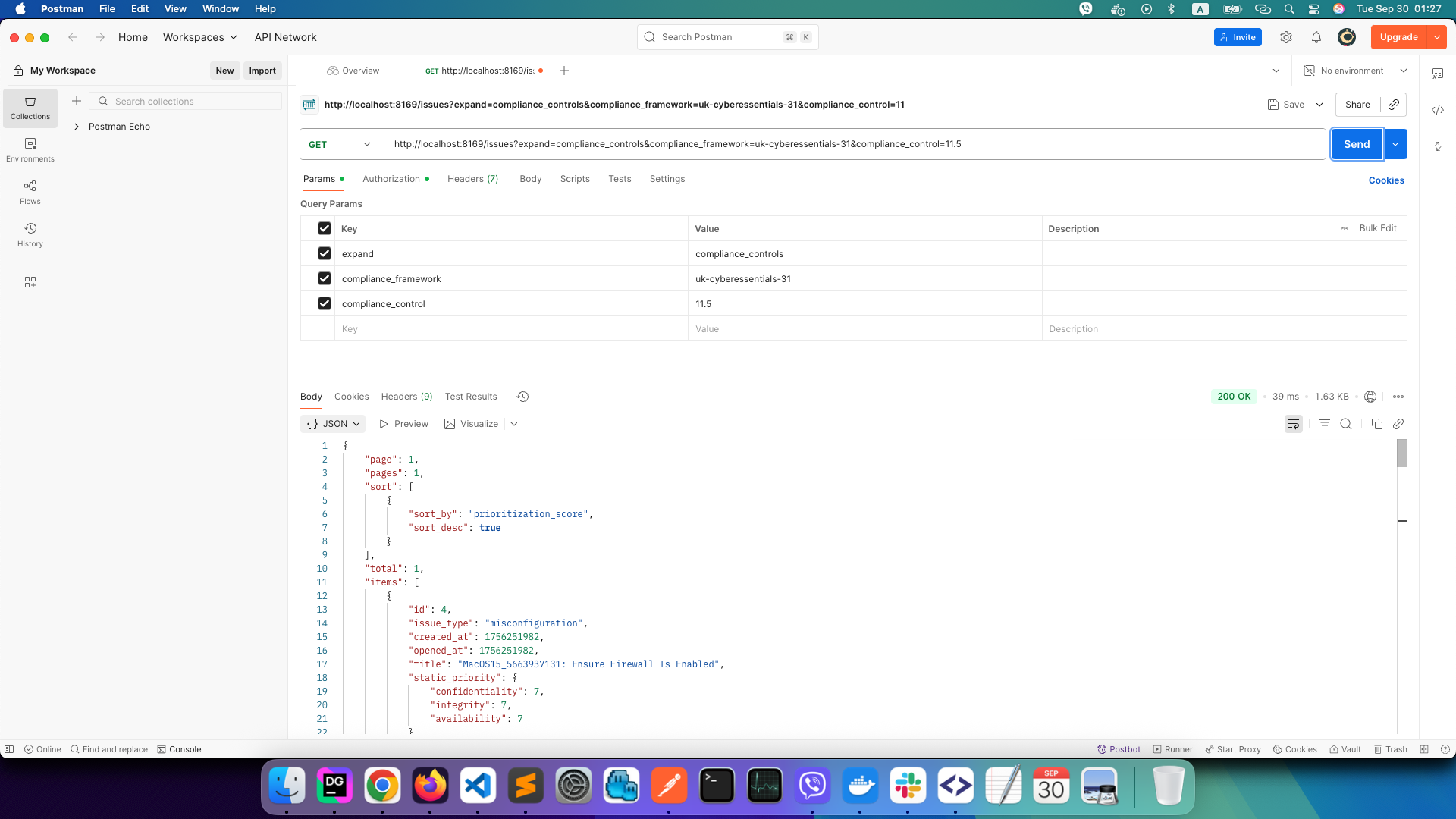 compliance_controls array on /issues (via expand=compliance_controls) and always on /issues/{id}.