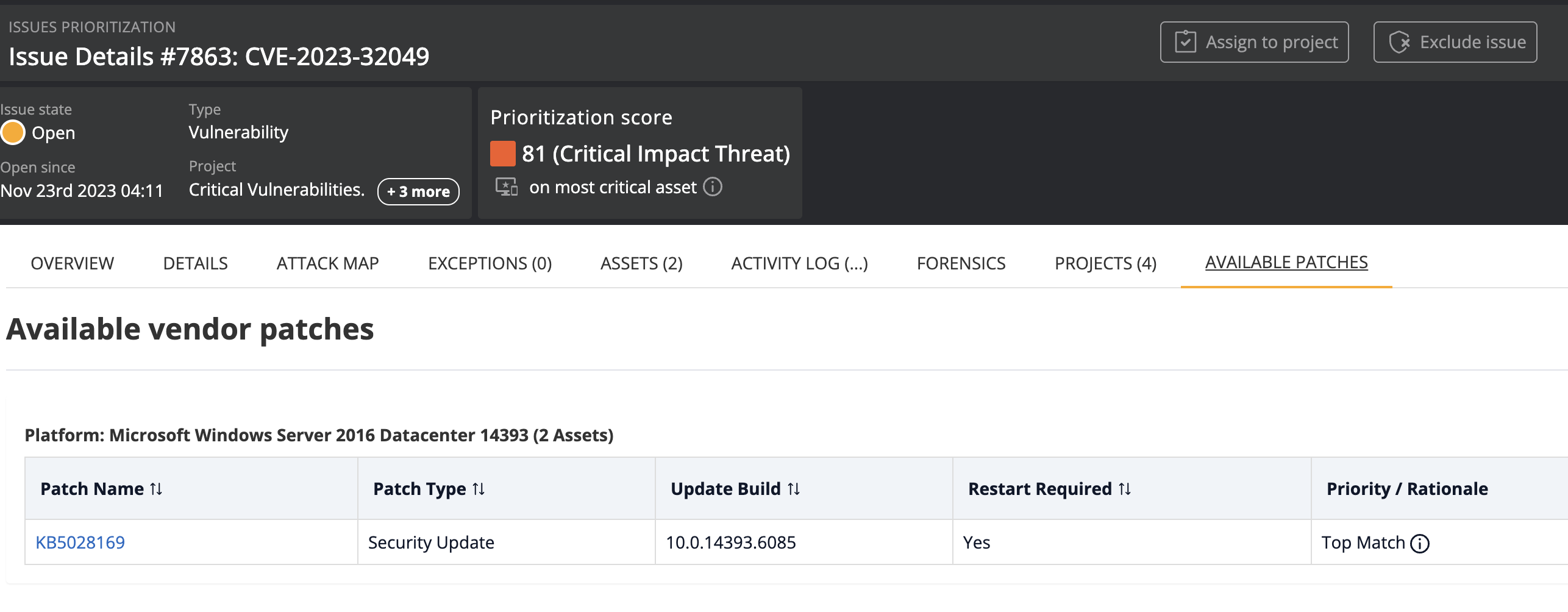 Windows patch recommendations filtered correctly. The Available Patches tab now shows only patches valid for the affected OS, aligning with MSRC expectations.